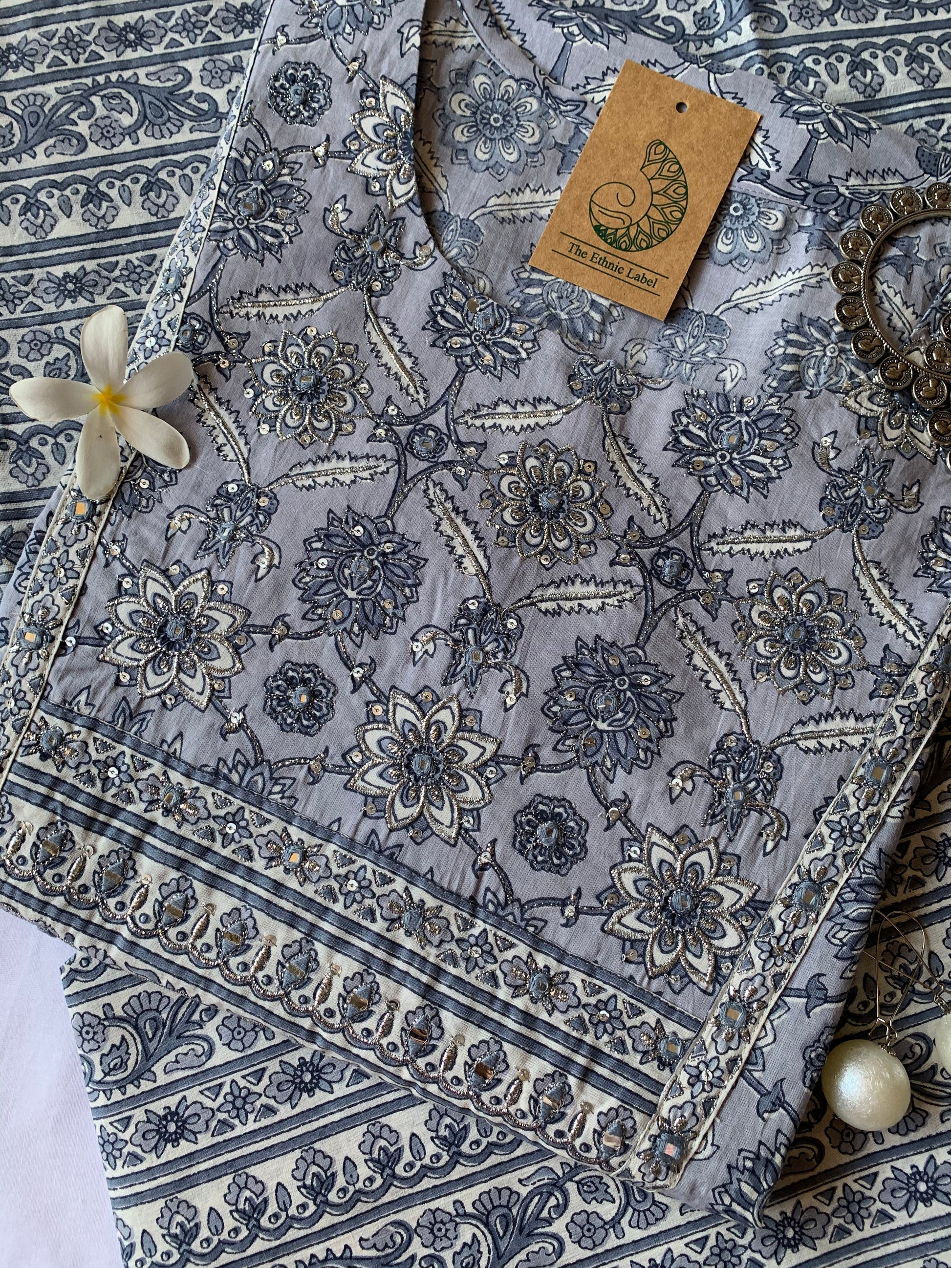 Pastel Grey Cotton Kurta Set - 3 pc