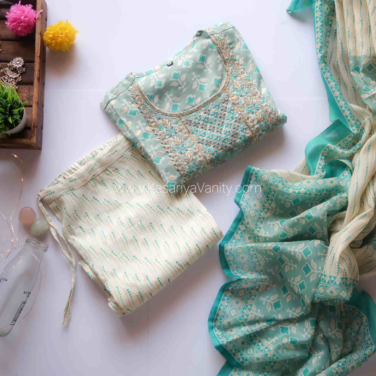 Special ocassions deserves elegant ensembles such as our Soft Turquoise Sequin Suit Set.